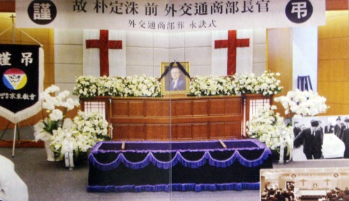 Àå·Ê½ÄÀº ¿Ü±³Åë»óºÎÀåÀ¸·Î Ä¡·¯Á³´Ù. °¿ø¿ë ¸ñ»ç´ÔÀÌ °¨Á¤ÀÌ º¹¹ÞÇô µµÀúÈ÷ ¿¹¹èÀεµ¸¦ ¸øÇϽðڴٰí ÇØ¼ °æµ¿±³È¸ ¹ÚÁ¾È ¸ñ»ç´ÔÀÌ ¸Ã¾ÆÁ̴ּÙ. Á¶¹®°´µéÀÌ ÈÀåÅÍ¿Í »ê¼Ò±îÁö µû¶ó°£´Ù´Â ÀÏÀº Å« Æó°¡ µÇ´Ï Àå·Ê½ÄÀå¿¡¼ °íº°Àλ縦 Çϵµ·Ï ÇÏÀÚ´Â °íÀÎÀÇ À¯¾ð¿¡ µû¶ó ¹Ú ¸ñ»ç´ÔÀÌ ±×·¸°Ô ±¤°í¸¦ Çß´Ù.
